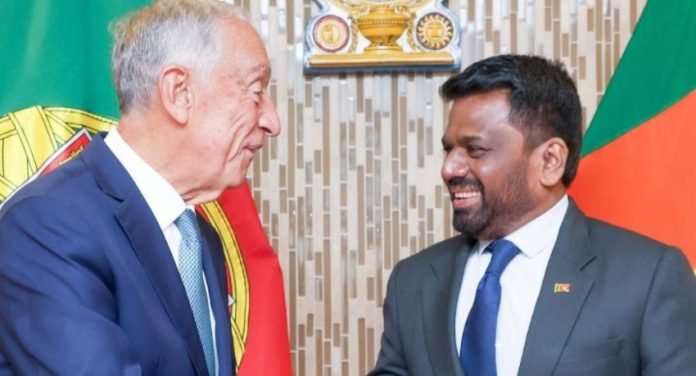 COLOMBO (News 1st); President Anura Kumara Dissanayake met with Portuguese President Marcelo Rebelo de Sousa for bilateral discussions on the sidelines of the 80th Session of the United Nations General Assembly, held at Sri Lanka’s Permanent Mission to the United Nations. President Dissanayake extended a warm welcome to President Rebelo de Sousa, and the two leaders engaged in a cordial exchange focused on enhancing trade and tourism relations between Sri Lanka and Portugal. The meeting underscored the mutual interest in expanding economic cooperation and fostering stronger people-to-people ties through tourism and cultural exchange.